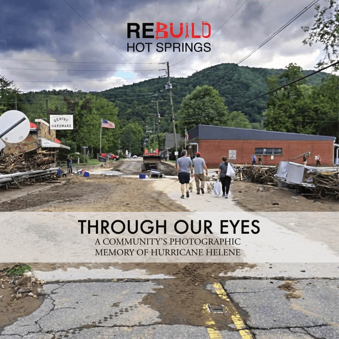 Hot Springs, NC – On the one-year anniversary of Hurricane Helene, the community of Hot Springs is releasing a book unlike any other: Through Our Eyes: A Community’s Photographic Memory of Hurricane Helene More than a traditional photo book, it is the collective story of a town battered by floodwaters, yet bound together by resilience, memory, and hope.